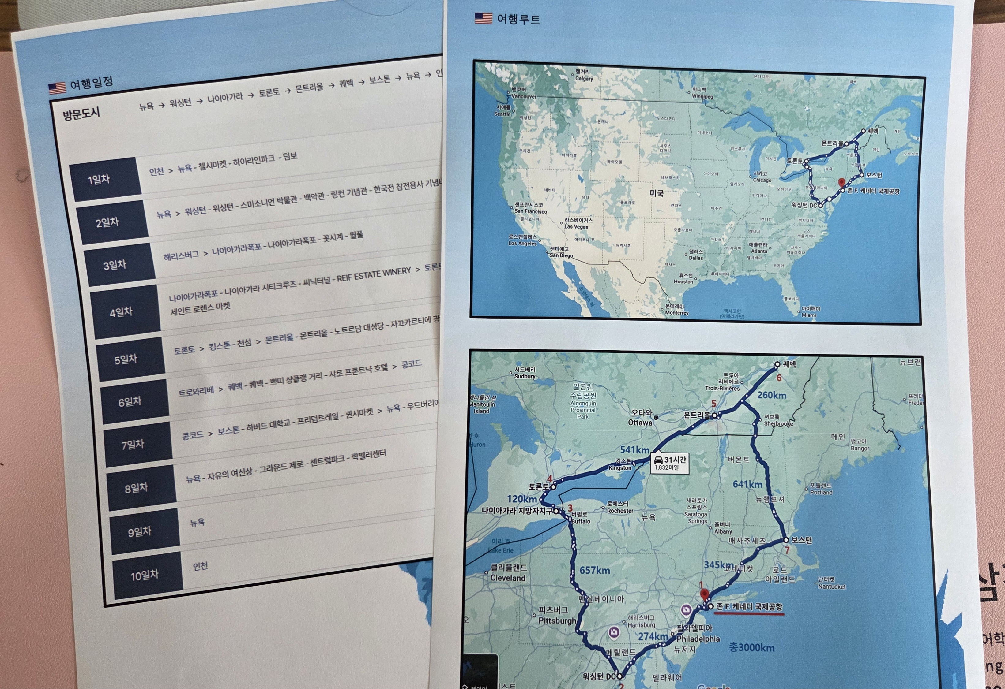 제공된 여행 일정을 바탕으로 지도를 그려보니 대략 3,000km 코스였고,