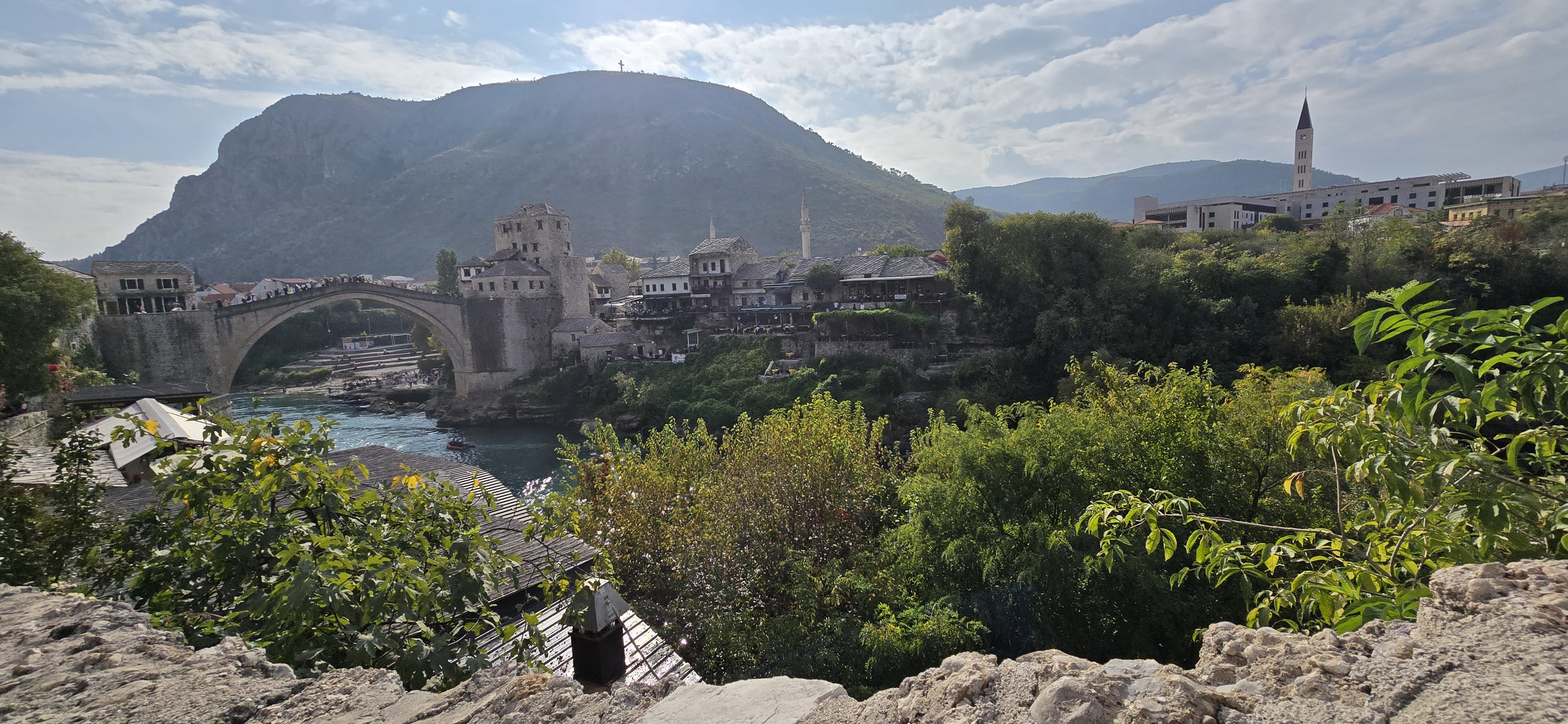 모스타르 다리는 보스니아 내전 당시 파괴되었다가 유네스코의 주도로 복원된 상징적 건축물이다. 좁은 골목의 터키풍 상점들은 사람들로 붐볐고, 시장 물건값은 크로아티아보다 저렴했다. 포토 존에서 줄을 서야 했고 관광객은 사진의 배경이 되었다.