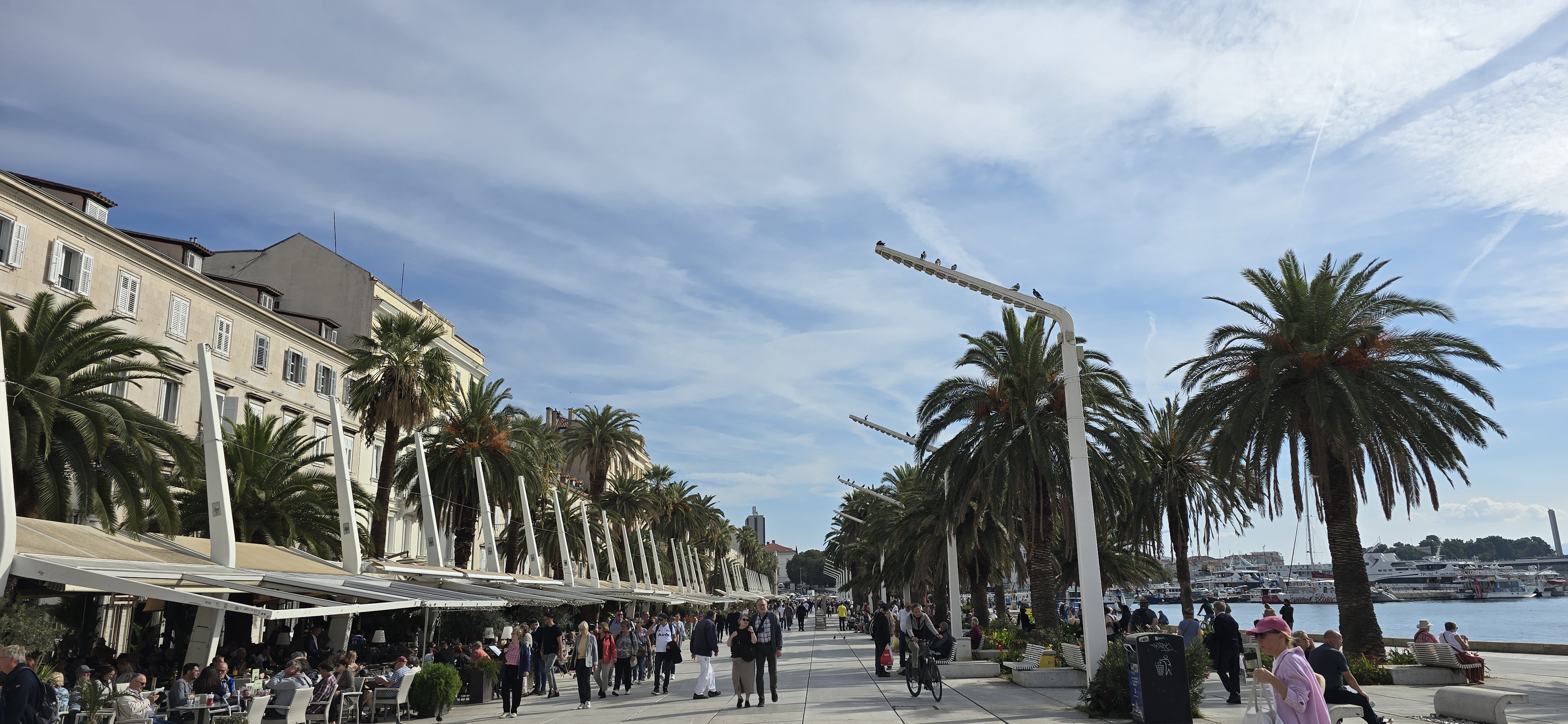 산길을 돌아 크로아티아 스플리트(Split)로 향했다. 두브로브니크가 ‘중세의 보석 같은 요새 도시’라면, 스플리트는 ‘고대 로마의 궁전 위에 세워진 살아있는 도시’라고 한다. 스플리트는 아드리아해에서 가장 큰 항구도시로 크로아티아 제2의 도시이다. 로마 황제 디오클레티아누스가 은퇴 후 지은 해안 궁전을 중심으로 발전한 도시로, 지금도 주민들이 궁전 안에서 거주하면서 상점과 식당을 운영하여 스플리트 구도시의 중심이 되었다. 로마 유적 가운데 가장 보존 상태가 뛰어나 1979년 세계문화유산으로 등재되었다. 아이스크림을 먹으며 우리나라 유명 배우가 방문했다는 신발가게도 들러 보았다. 석조건물 기단부에 걸터앉은 노파 앞에는 낡은 신장·체중계와 칠이 벗겨진 나무 의자 위에 다 마신 종이컵이 있었다. 그 장면은 세월과 삶의 무게를 말해주었다. 골목이라 하기엔 너무 짧은데 세계에서 가장 좁은 골목이라고 해서 둘이 나란히 지나가 보았다. 해변 거리는 줄지어 늘어선 야자수로 남국의 분위기를 자아냈다.