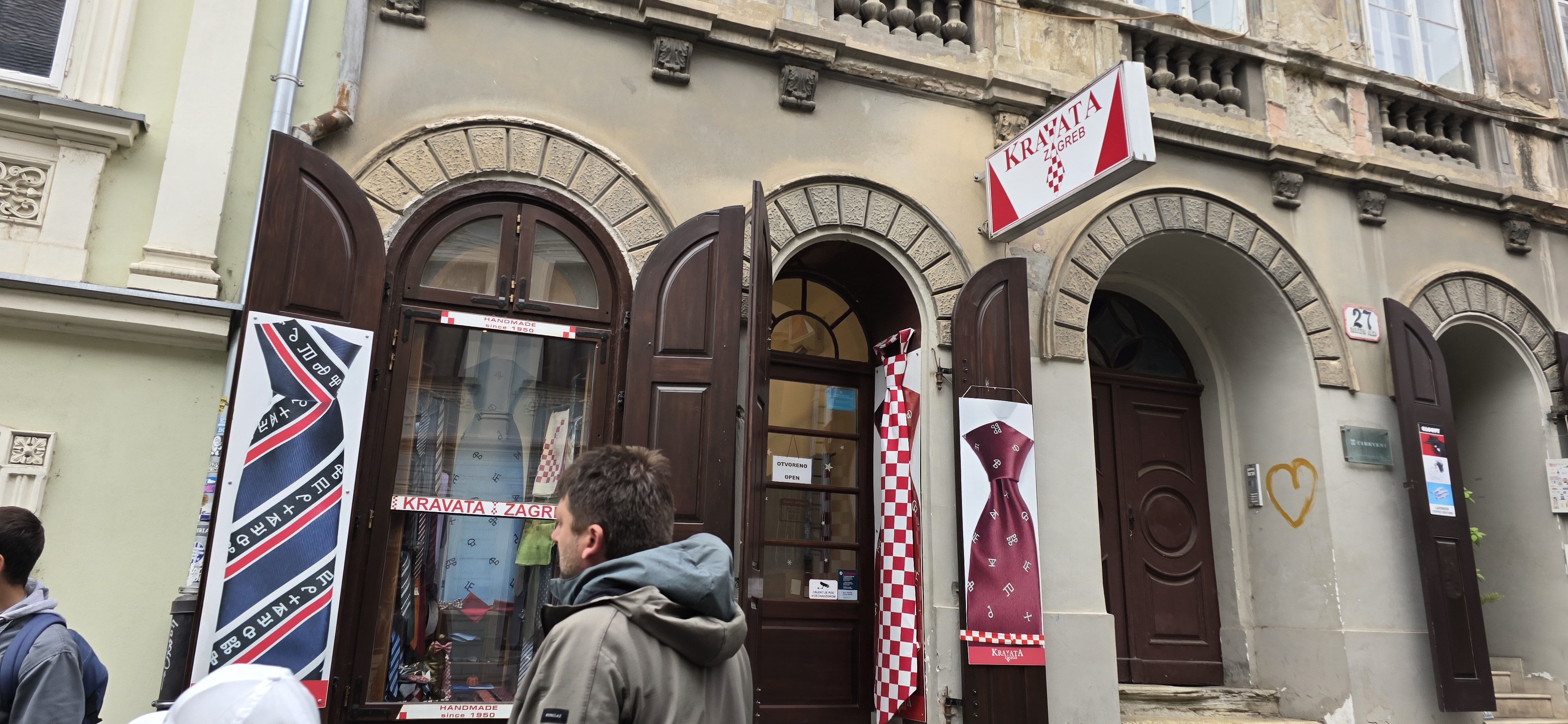 여행의 마지막 날, 공항이 있는 자그레브로 향했다. 상부 도시는 대성당과 성 마르코 교회 등 중세 건축물이 즐비한 구시가지여서 볼거리와 이야깃거리가 풍성했다. 하부 도시는 박물관, 극장, 카페 등이 많은 현대적 중심지로, 전차가 다니고 있었다. 반 요시프 예라치치(Ban Josip Jelačić)는 크로아티아의 정치 지도자로 민족적 영웅으로 평가받는 인물이다. 예라치치 광장은 만남의 장소이다. 광장 중심에는 군인답게 긴 칼을 들고 말을 타고 달리는 예라치치의 기마상이 있는데 목에 빨간 머플러를 둘러놓았다. 그러고 보니 매년 10월 18일이 크라바트의 날(Cravat Day)이다. 17세기 프랑스 용병으로 활약한 크로아티아 군인들이 착용한 빨간 머플러 ‘크라바트’는 넥타이의 기원으로 인정받아, 오늘날 그 전통이 기념되고 있다. 크로아티아 전역에서는 다양한 행사가 열리며, 동상마다 빨간 머플러를 두른다. 이 행사는 매년 10월 중순부터 약 일주일간 이어진다고 한다. 마침 우리가 방문했을 때가 행사 기간이었다. 구시가지 골목에서 넥타이 상점을 보았는데 크로아티아 국기 문양이 그려진 넥타이가 눈에 띄었다.