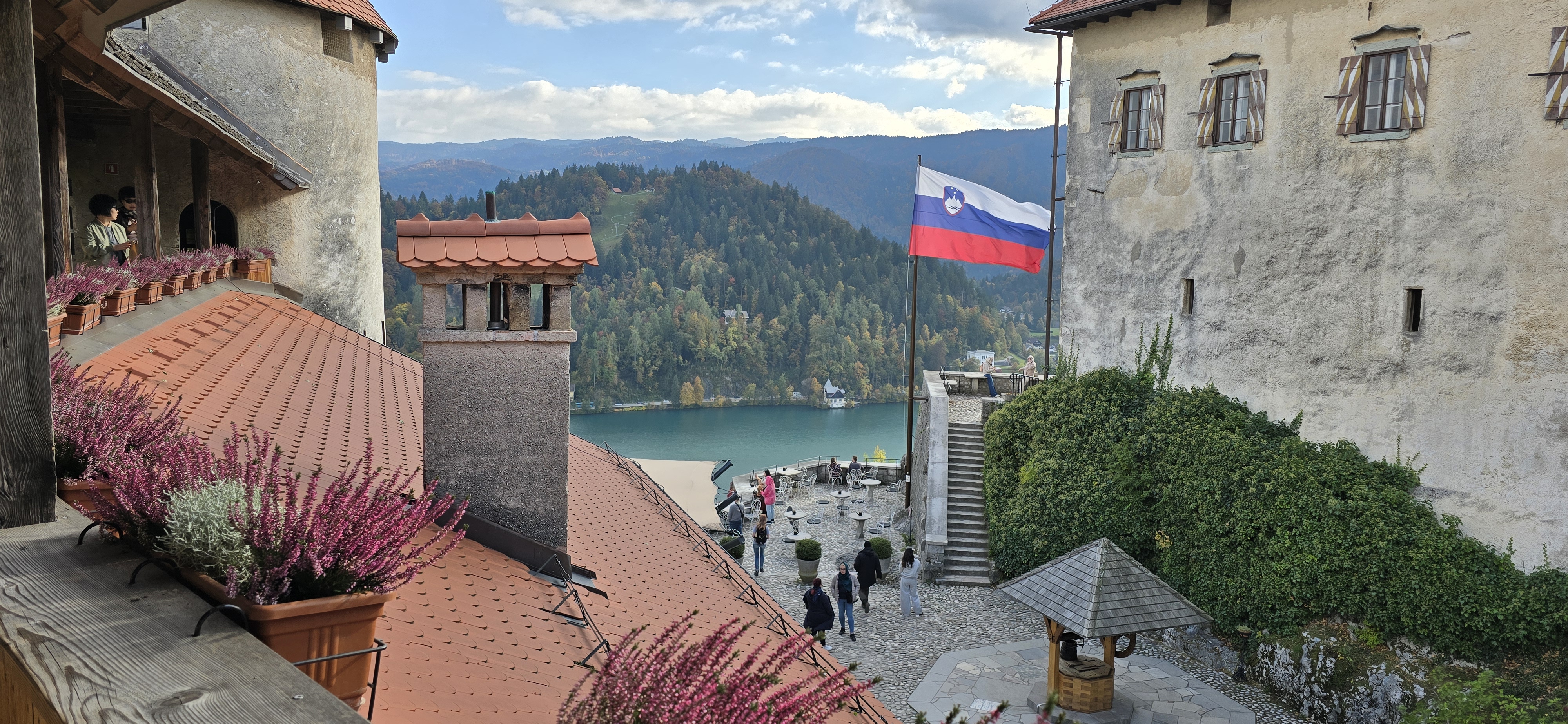 오후에는 절벽 위의 고성, 슬로베니아에서 가장 오래된 블레드(Bled) 성으로 향했다. 붉게 물든 아이비가 벽을 감싸 가을 정취를 더했다. 성벽 위에서 내려다본 풍경은 말 그대로 목가적이었다. 저 멀리 알프스의 만년설이 흐릿하게 보였고, 빙하가 만들어낸 호수와 작은 마을은 한 폭의 그림 같았다. 블레드 호수에서는 전통 목조 노 젓는 배 ‘플레트나(Pletna)’를 타고 호수 중앙의 작은 섬으로 갔다. 아담한 성모승천 성당의 종을 세 번 울리면 소원이 이루어진다고 했다. 비싼 요금에도 불구하고 종을 치는 사람들이 꽤 있었다. 호숫가의 호텔은 과거 북한의 권력자가 묵은 곳으로 유명하다고 했다. 기념품점에서 블레드 성이 그려진 컵과 식사 후 마셔볼 슬로베니아 특산 화이트 와인을 샀다. 밤에는 슬로베니아 북서부의 산악지역에 있는 작은 로지(lodge)형 호텔에 도착했다. 다음 날 아침, 옅은 안개에 덮인 마을은 고요했고, 시원하게 흐르는 개울물은 일본의 시골 풍경을 연상시켰다.