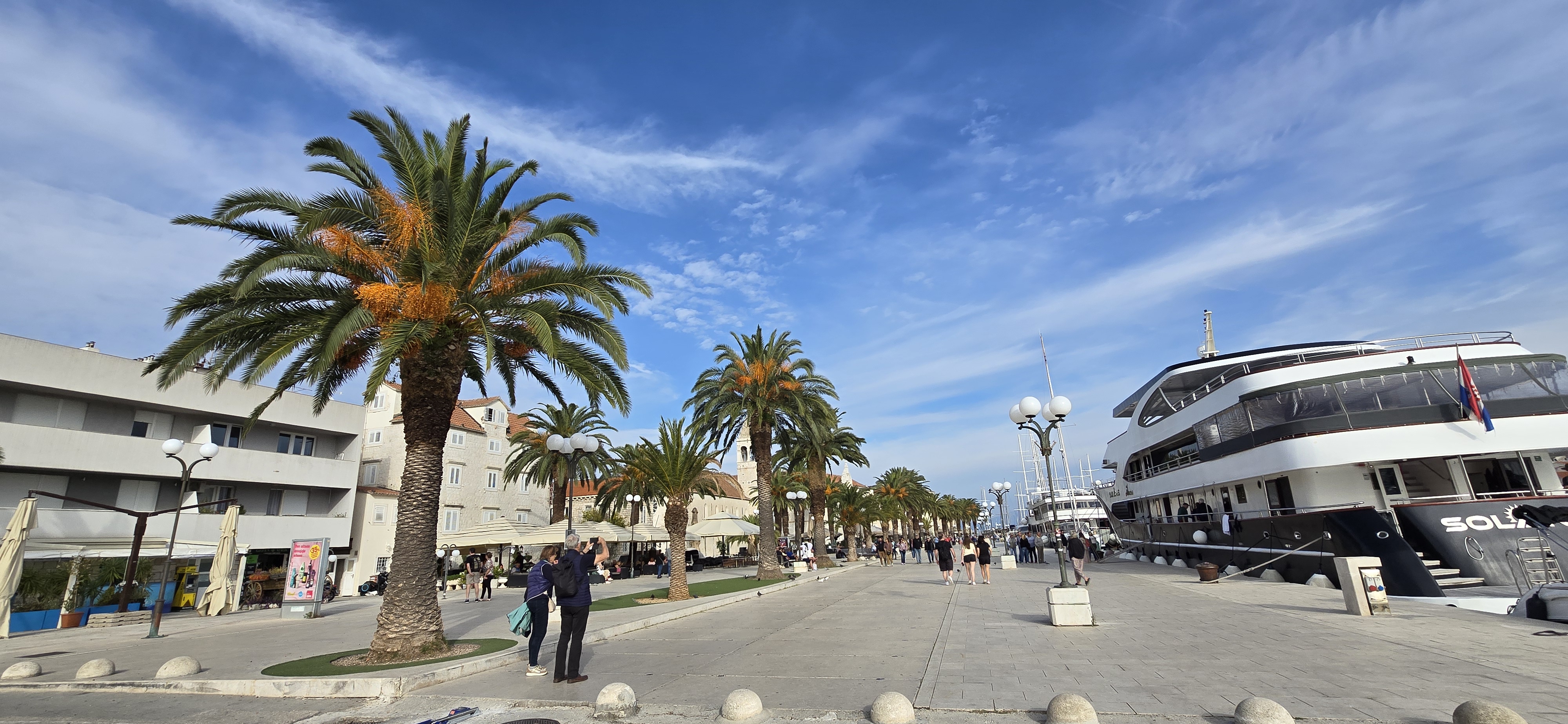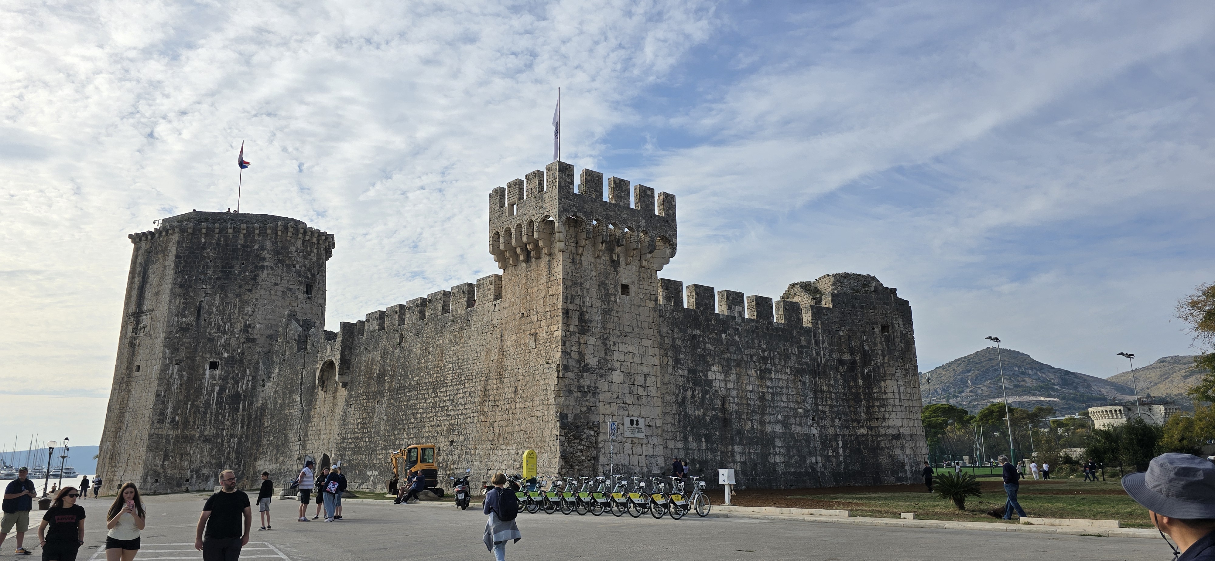 이어 버스로 30분 정도 거리의 트로기르(Trogir)를 방문했다. 작은 섬 위에 세워진 중세 도시로 고대 그리스·로마·베네치아 시대의 건축 양식이 잘 보존되어 섬 전체가 1997년에 세계문화유산에 등재되었다. 작은 스플리트라 불릴 만큼 스플리트와 느낌이 비슷했다. 과거에는 섬 전체가 성벽으로 둘러싸여 있었으나 지금은 일부 성벽 구간과 카메를렌고 요새(Kamerlengo Fortress)만 남아있다. 고풍스러운 골목길, 항구를 따라 늘어선 대형 요트들과 야자수 길이 어우러져 매우 아름답다. 하도 걷다 보니 슬슬 다리가 무거워졌다. 다시 버스를 타고 이전에 묵었던 카를로바츠의 숙소로 갔다.