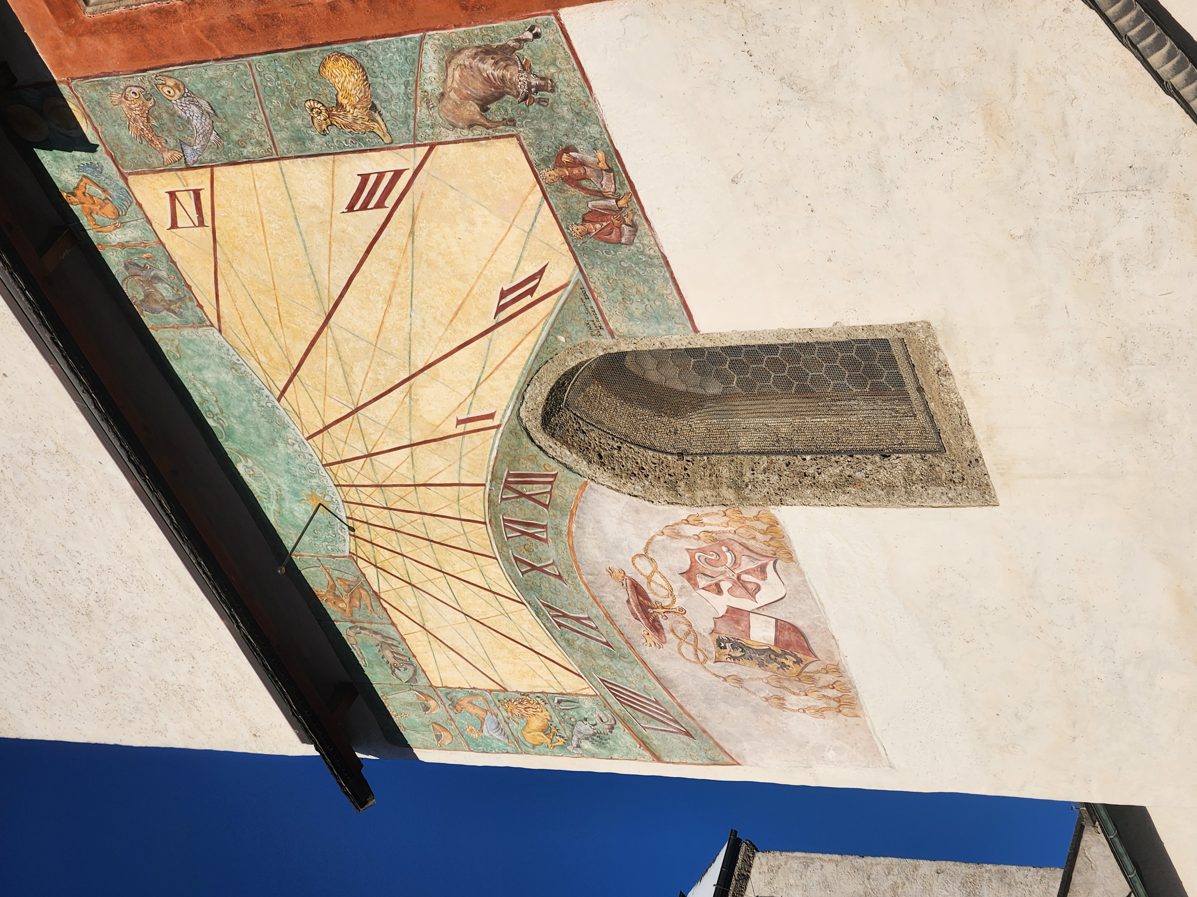중간에 시간이 오후 4시까지밖에 없는 신기한 벽 그림 해시계를 봤는데 여기가 오후 4시 이후로는 해가 안 들어와서 그렇다고 하더라구요 정말 흥미로웠습니다!