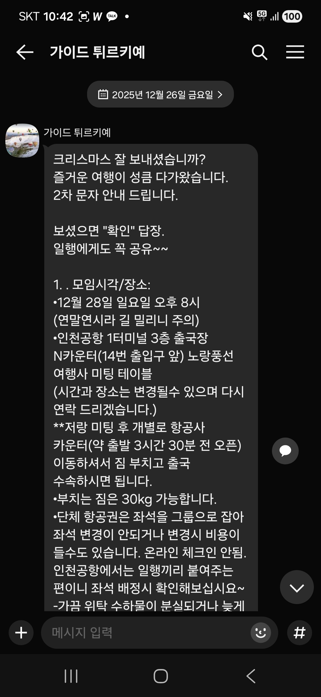 이번 12월 28일 여행 관련하여