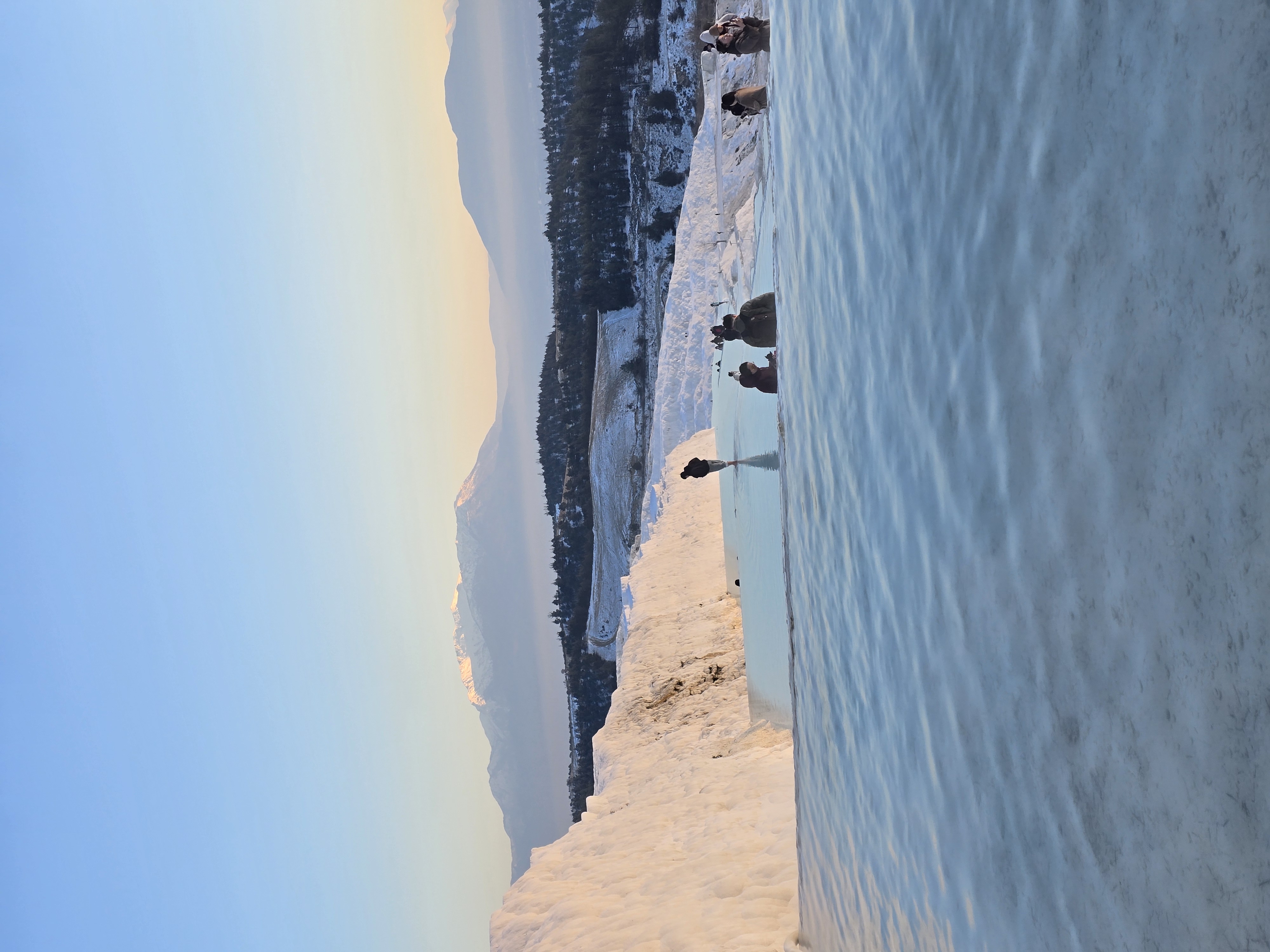 컵으로 찍어 놓은 듯한 호수와 카라반들의 숙소 이곳에서 우리는 차에 이상이 생겨 지체 ㅠㅠ 그래도 뒤에 팀들은 폭설로 통제되어서 못 보았다니 우리는 럭키비키죠. 여기서 다른 한국팀들 가이드님들은 수신기 없이 설명하시고 사진도 안 찍어주시던데 우리가이드님은 폭설 중에도 명당에서 모든 팀들 사진 찍어 주셨어요.