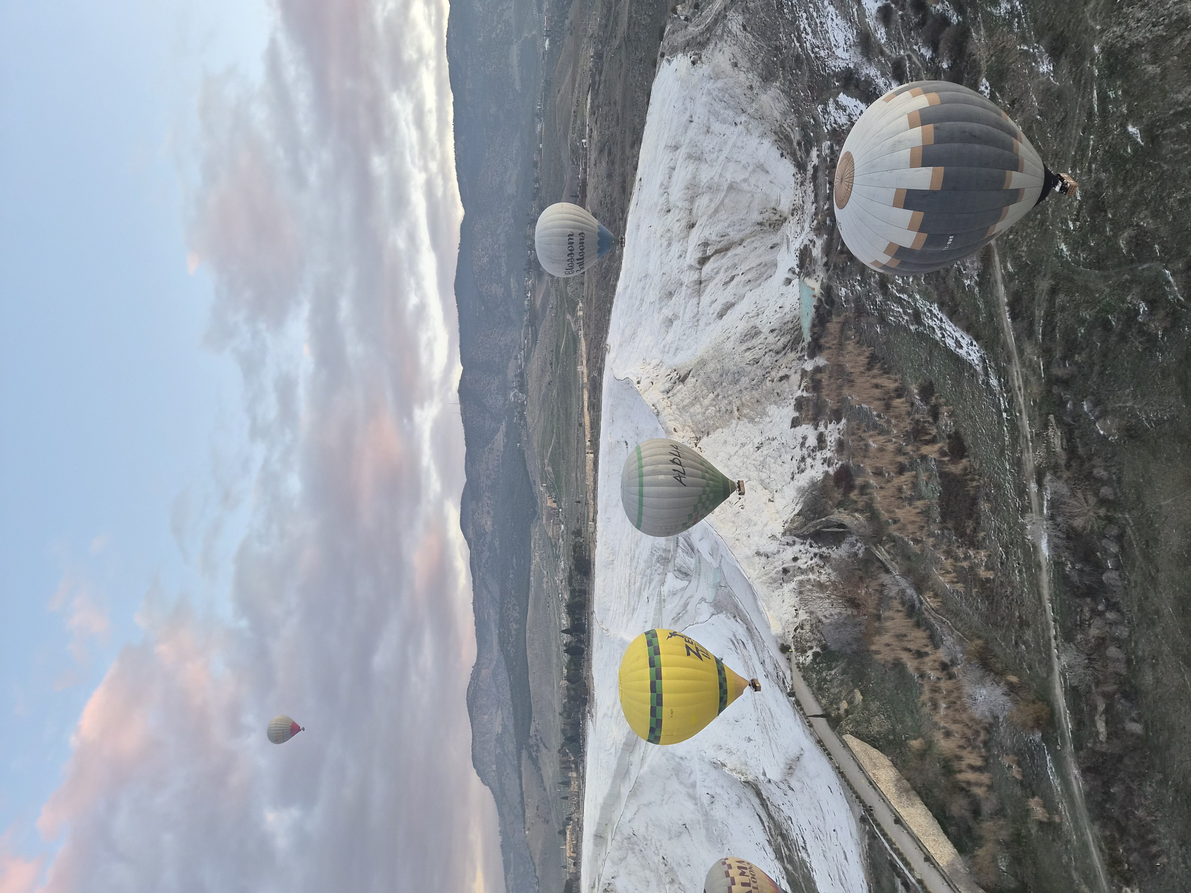 카파도키아에서 타고 싶었지만, 파묵칼레에서라도 탈수 있어 좋았어요. 오랜만에 뜨는 날이라 모든 열기구가 동시에 뜨니 장관이였답니다. 정말 잊지못할 것 같아요. 여기서도 가이드님이 사진과 동영상을 열심히 찍어주셨답니다. 1월2일 열기구에서 해돋이 구경 왼료!!! 판타스틱 하나도 안무서워요 제발 타세요.