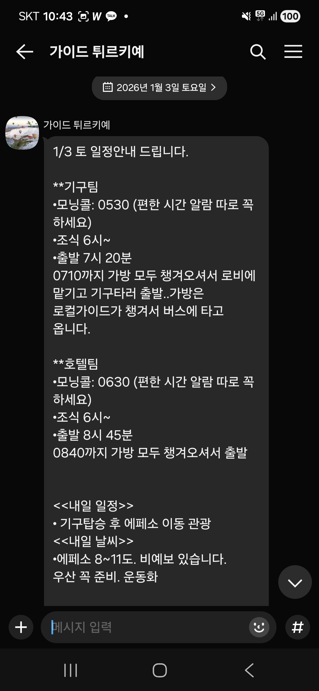 *가이드님의 안내문자