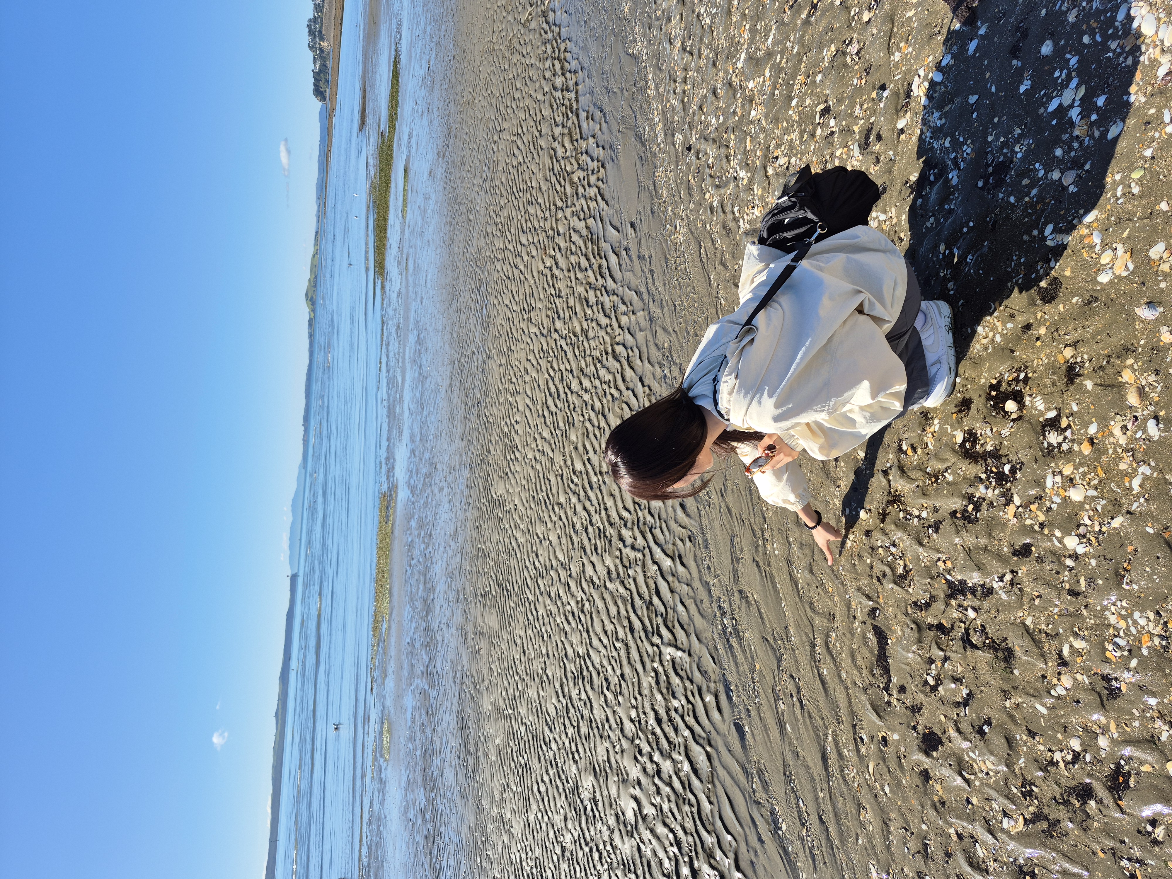 뉴질랜드 바닷물은 안 짜다고 설명해주셔서, 궁금함을 못 참고 바닷물을 찍어 먹어봤다.