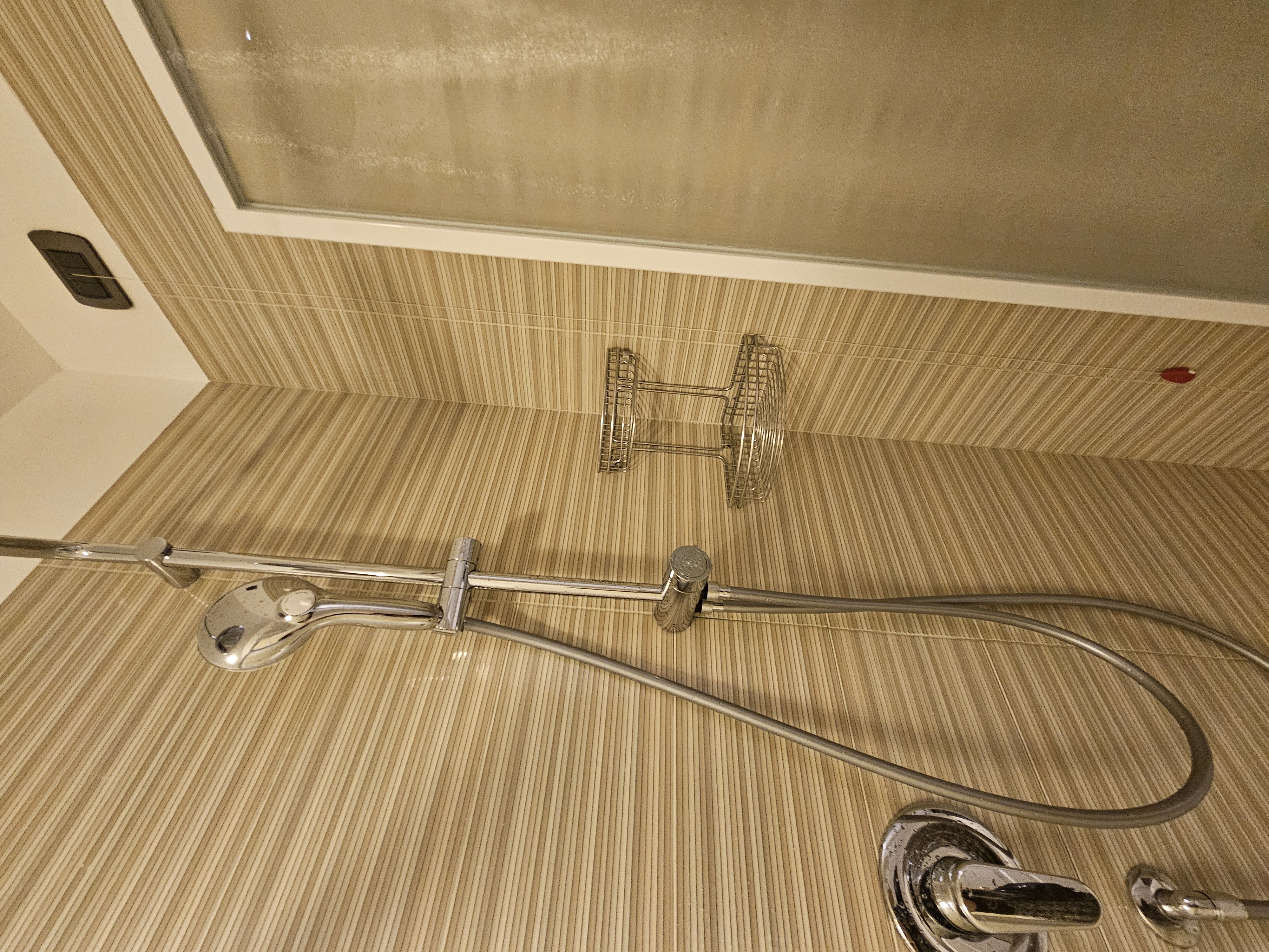숙소의 샤워부스에 있는 하얀 줄은 잡아당기면 구조대가 긴급출동 한다고 하니 일 없으면 만지지 않도록 해야해요.
